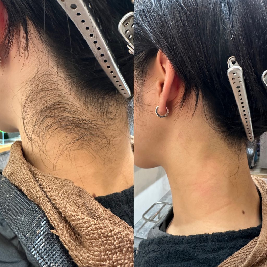 「美容室に行った直後」の落とし穴 普段、カットの最後にはバリカン等で綺麗にするため、その場の仕上がりは完璧です。 しかし、問題は**「数週間後」**。 うなじの毛が生えてくると、髪の長さ自体はまだ気にならなくても、全体的に「ボサッとした」「カットに行けていない」印象を与えてしまいます。